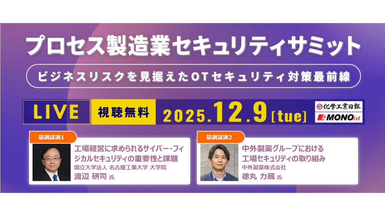本セミナーは、プロセス製造におけるDX推進でいまや避けては通れない「OTセキュリティ」にフォーカスし、プロセス製造の現場で起こり得るセキュリティインシデントや、サイバーレジリエンスを高める戦略について、有識者の見解やプロセス製造企業のセキュリティ対策事例、協賛企業の最新セキュリティソリューションをご紹介する。