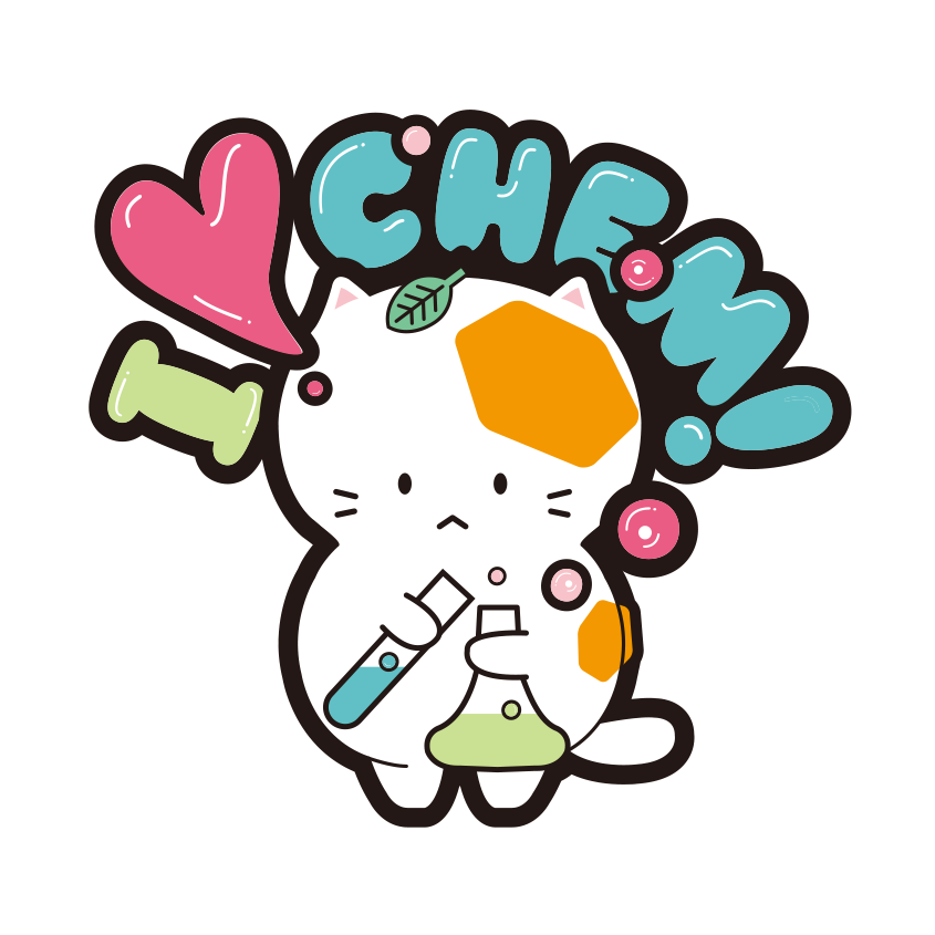 来歴 | 母猫とはぐれたところを化学企業の社員に拾われた。飼い主が購読している化学工業日報を日々読んで勉強している。そんな日々の中で、気付いたら模様がベンゼンの六角形になってきた。 |