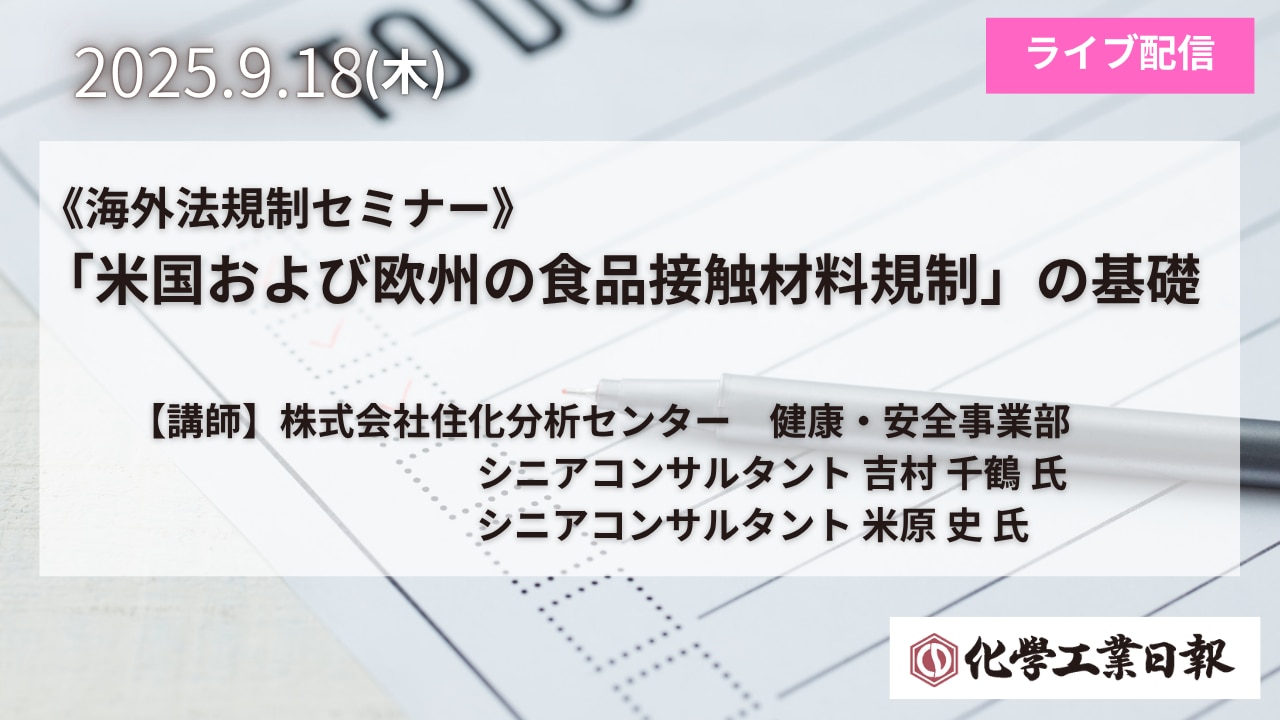 本セミナーでは、米国、欧州とも関連する食品接触材料規制の全体像や基本的な考え方、メーカーの方の実務対応上の注意点等について、ご説明いたします。皆様のご参加をお待ちしております。