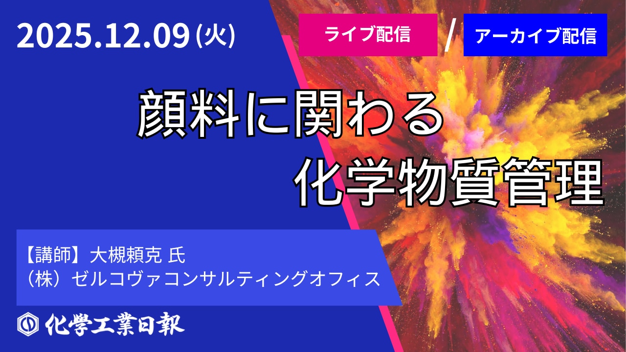 本セミナーでは「顔料に関わる法規」や「注意すべき化学物質」について紹介し、その対応について解説いたします。