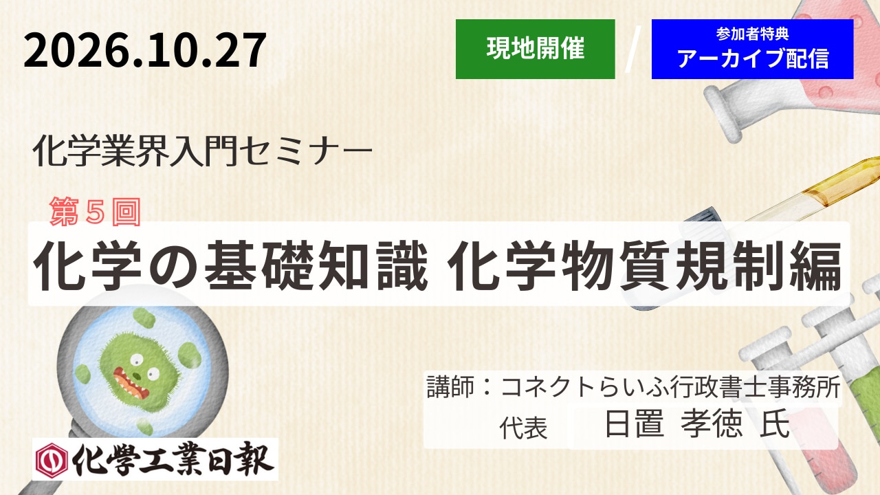 | 会場 | 化学工業日報社 5階 大会議室 (東京都中央区日本橋浜町3-16-8) |